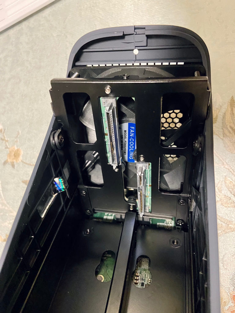 打开顶盖后能看出,极空间Z2S内部还是相对紧凑的,这也是他小巧的原因,并列安装两个3.5寸硬盘位后基本没有过多的预留空间。