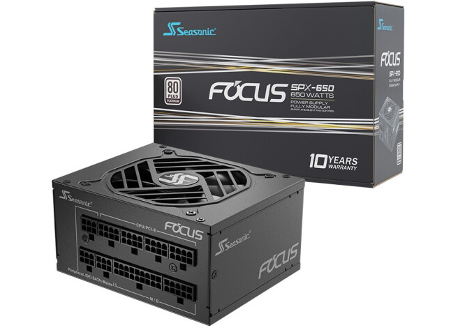 如果因为Q58机箱的特性,你决定牺牲一点硬盘位和散热器空间装ATX电源,那么可以选择海韵的FocusGX650,80PLUS金牌全模组,一样的10年质保加全日系电容,ATX电源里的14cm小身形方便节省空间,智能温控风扇启停等功能也适合ITX机箱环境。目前价格799元,双十一则是679元,的确可以节省不少预算。