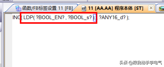 在本例中,是使用按钮的上升沿作为INC的使能端,那么就直接在“?BOOL_EN?”输入指令LDP(上升沿指令)同样按ctrl+F1。如下图所示: