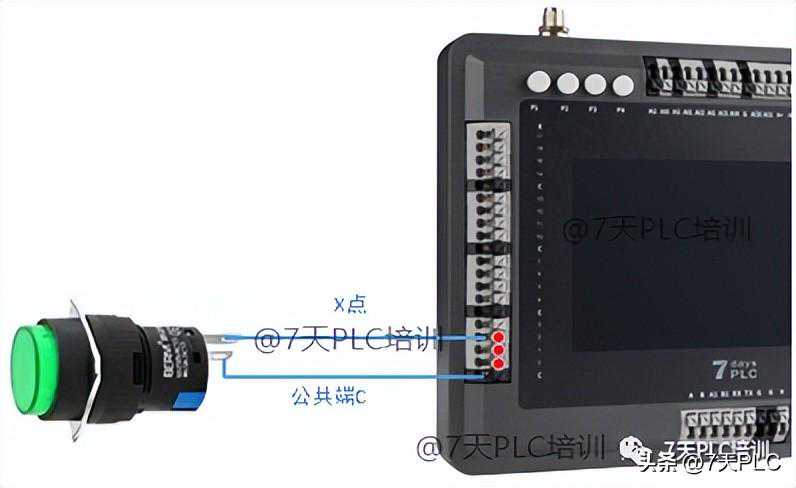 根据I/O分配表的分布,我们将三种纸币的模拟投币按钮接在X0-X2三个端口中。三个按钮中的一端分别接X0、X1、X2对应三个红点,按钮的另一端全部接到公共端C即可。
