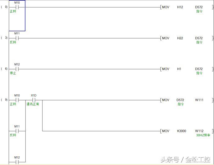 最后,设置完参数,配置好协议后,剩下就是编写程序,这里使用的专用指令是G(P).CPRTCL,大家可以参考L系列串行通信模块用户手册基本篇,这里不详细讲解指令使用方法。程序如下图: