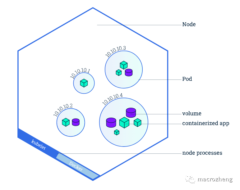 Node:用于托管正在运行的应用。可以是一个虚拟机或者物理机,它在Kubernetes集群中充当工作机器的角色,每个Node都有Kubelet,它管理Node而且是Node与Master通信的代理,Node还具有用于处理容器操作的工具,例如Docker或rkt。