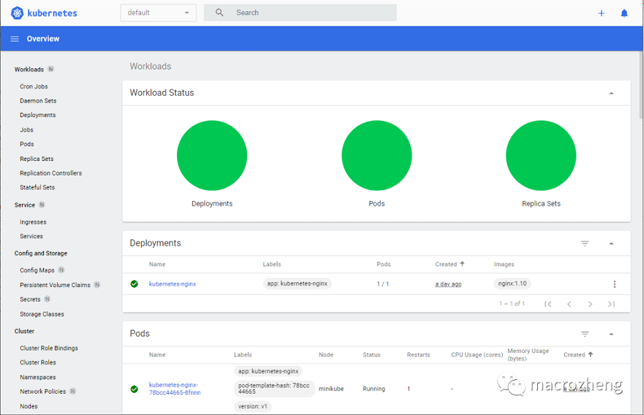 NAMESTATUSROLESAGEVERSIONminikubeReadycontrol-plane,部署应用