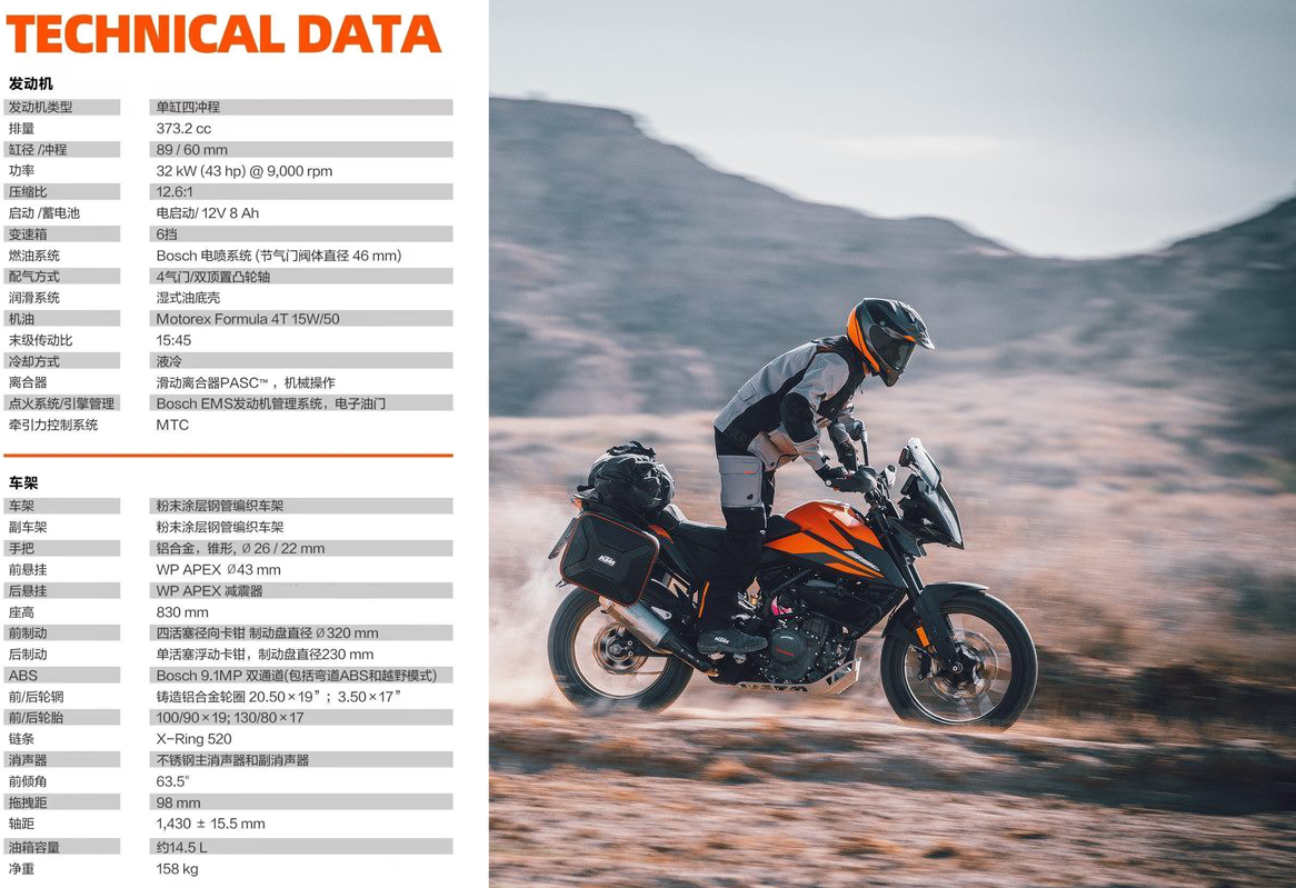 还有滑动离合的加入,不仅可以让激进驾驶更安心,还能让骑士用一根手指就能轻松操控离合。KTM390ADVENTURE净重仅为158kg,满载也才172kg,3.9kg/hp的马力推重比在同级车型中罕逢敌手。