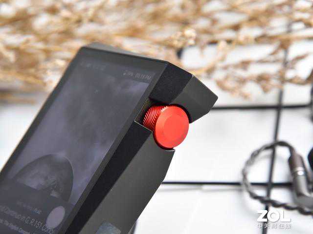 在接口方面机身底部有一个MicroUSB接口,侧面一个TF卡扩展槽,耳机接口方面一如既往的配置了两个接口一个3.5mm单端接口和一个2.5mm平衡接口。按键方面也是保留了一直以来都配置的播放暂停、上下曲以及锁屏按键。音量旋钮配置在右侧,而毫无疑问红色的音量旋钮也是这台机器最大的特点和辨识度的部分了。