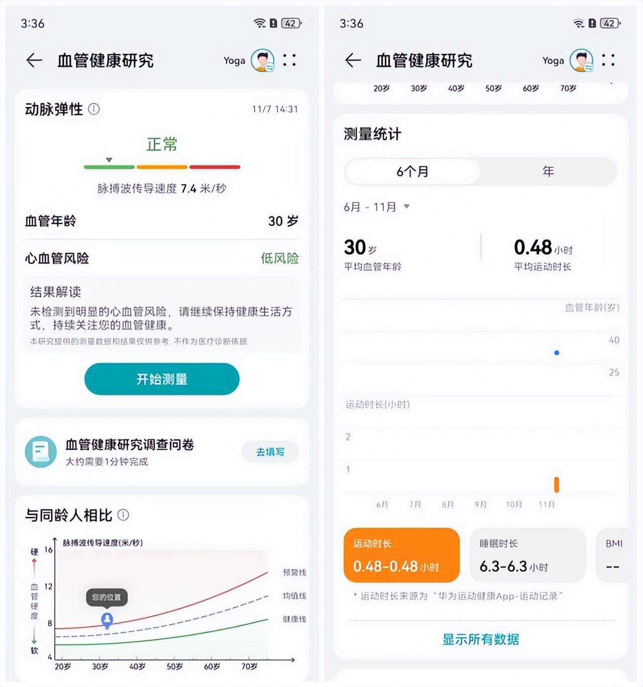 而血管健康研究则是HUAWEIWATCH4系列首次支持的功能,通过监测血管弹性、血液流速,筛查血管状态、老化情况等数据,结合用户年龄可以判断血管的健康情况,预防心血管疾病。