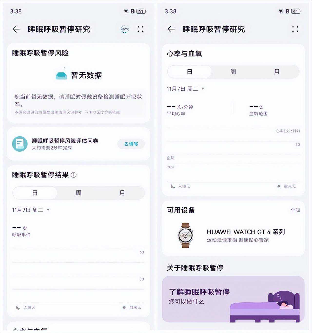 而HUAWEIWATCH4系列通过TruSleep™3.0睡眠监测技术,不仅能够准确记录入睡时间和睡眠数据,同时也能监测睡眠呼吸暂停的情况,对于睡眠健康问题非常有帮助。