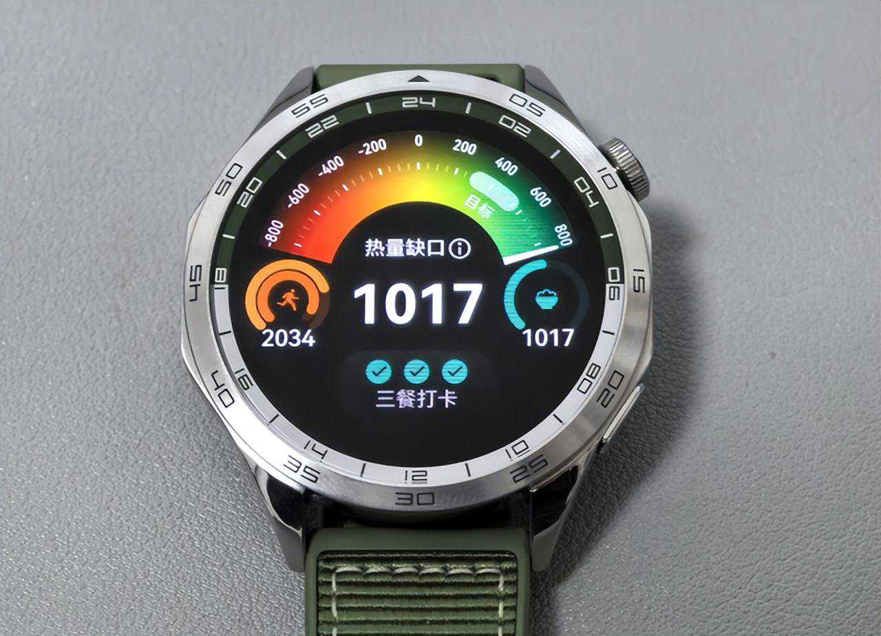 而HUAWEIWATCHGT4的吃动平衡概念,展开说就是将热量数据化,让你在科学的范围内保持每天摄入热量小于消耗热量,从而达到减脂的目的。具体操作上也非常简单,打开手表上的减脂塑形功能,输入自己的体重和减脂目标,手表就会提供一份科学减脂计划。然后你通过华为运动健康App中的热量记录功能,以拍照识别或者文字记录的方式,上传自己一日三餐的饮食内容,APP会自动计算你当日热量摄入情况,同时再汇总你当日静息代谢和运动代谢的热量消耗情况。这样就能清晰的计算出你每日的热量缺口(热量缺口=总消耗-总摄入,数据为正时表示消耗大于摄入,有利于减脂),让减脂从抽象预估变成了科学的可视化和数据化清晰的展示在手表表盘上。