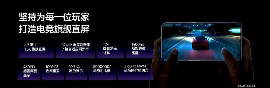 屏幕方面,真我GTNeo5采用一块6.7英寸的OLED居中挖孔直屏,2772×1240分辨率(1.5K级别),支持144Hz刷新率(七档智能动态刷新率和4档应用自定义调节)、2160HzPWM调光、10.7亿色原色显示、450PPI、局部1400nit亮度、1500Hz电竞级瞬时触控率等