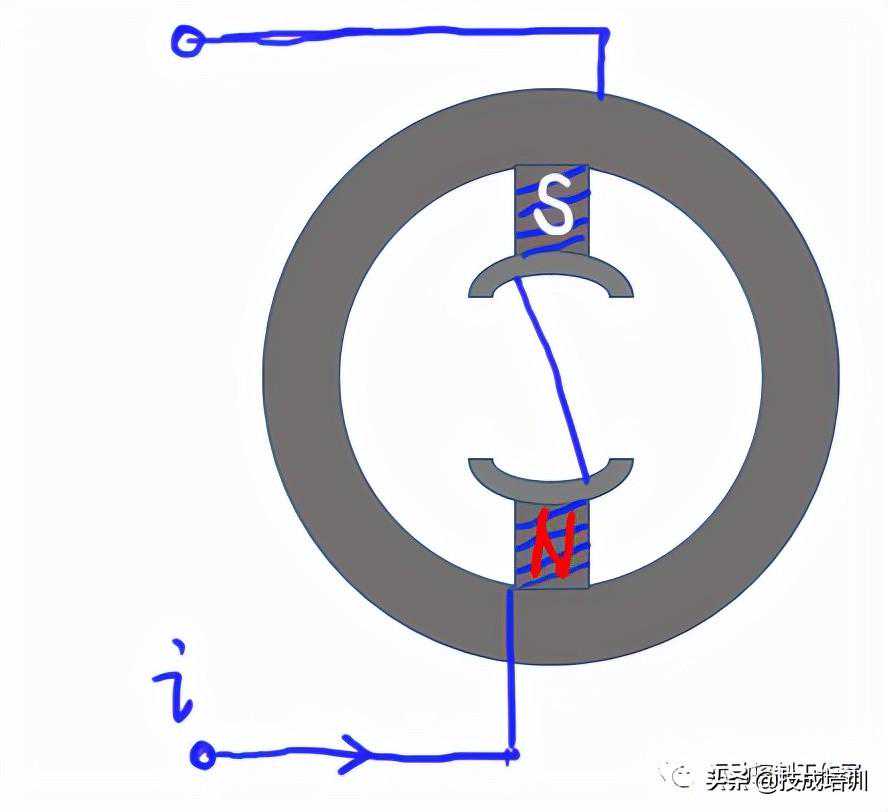 如果把绕组做到电机定子上,即可在定子上产生磁极。如图6所示: