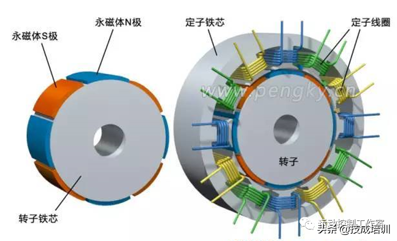 永磁:伺服电机的转子表面贴的是永磁磁铁。