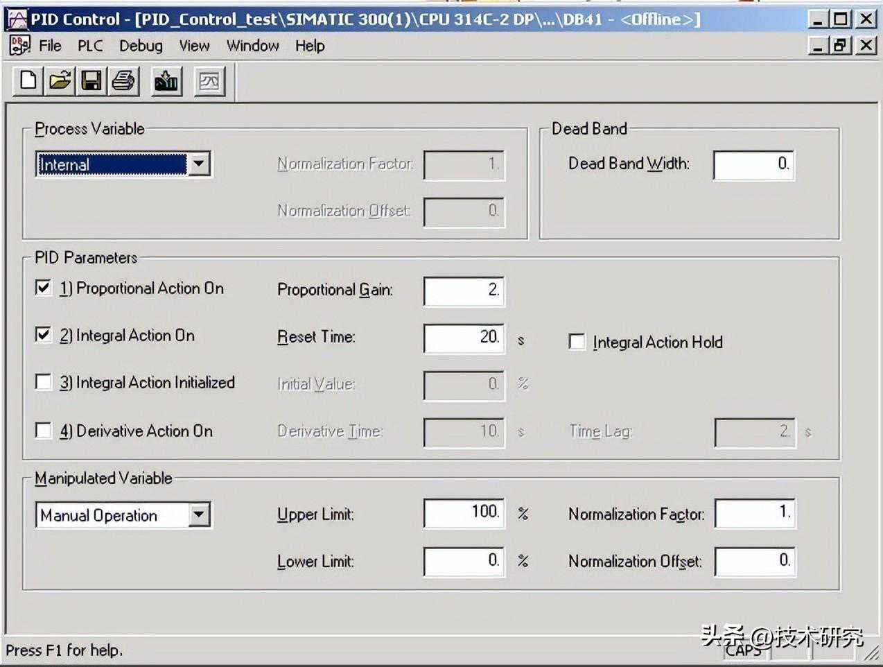 PID算法作为一种位置算法进行控制。比例运算、积分运算(INT)和微商运算(DIF)都可并行连接,也可以单独激活或取消。这就允许组态成P、PI、PD和PID控制器。也可以是纯I和D调节器。
