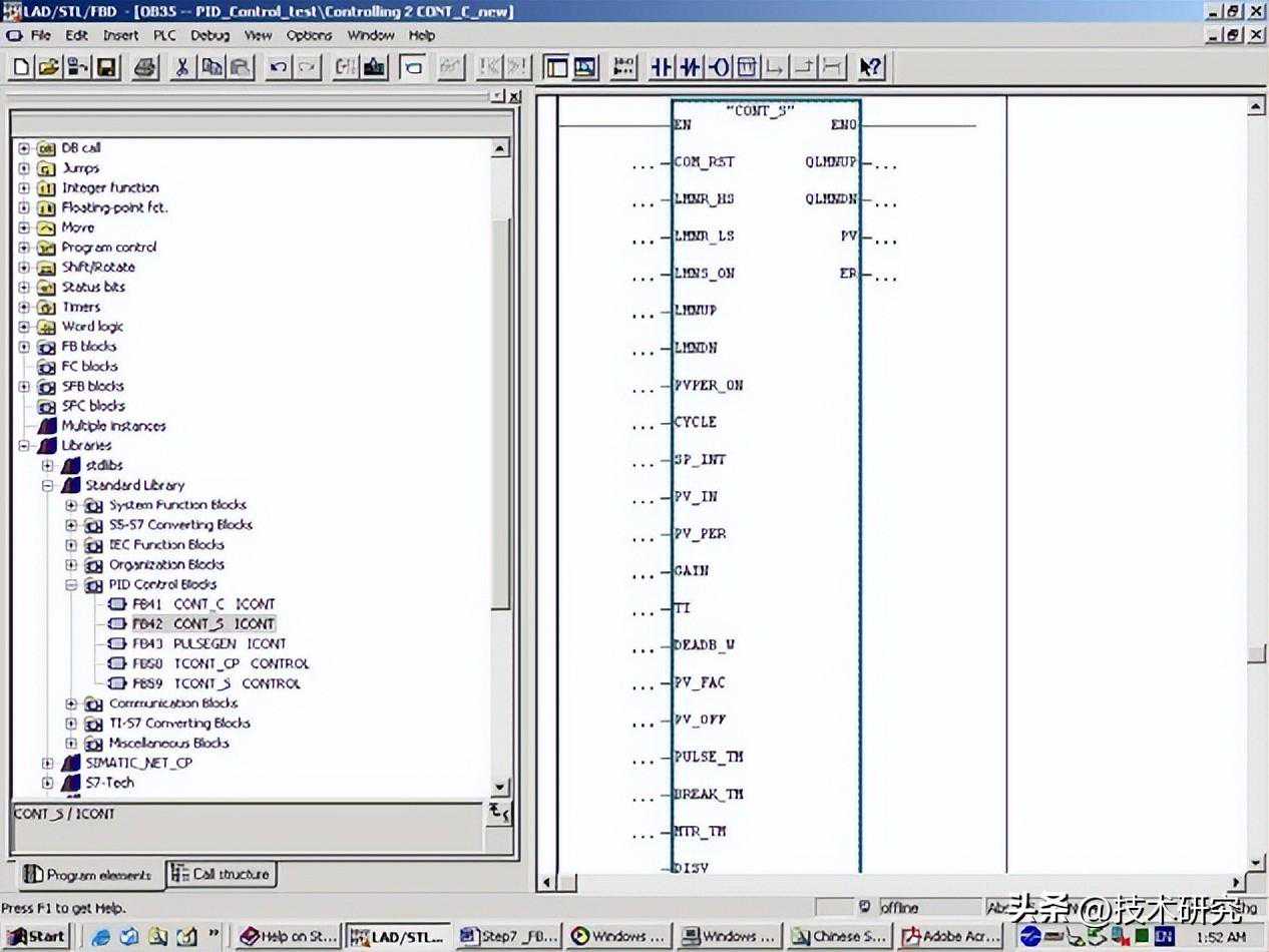 功能块介绍连续调节功能SFB41/FB41“CONT_C”简介SFB/FB“CONT_C”(连续控制器)用于使用连续的I/O变量在SIMATICS7控制系统中控制技术过程。你可以通过参数打开或关闭PID控制器,以此来控制系统。通过参数赋值工具,可以很容易地做到这一点。调用:StartSIMATICSTEP7PIDControlParameterAssignment(如图)。在线电子手册,见StartSIMATICDocumentationEnglishSTEP7–PIDControl(如图11)。