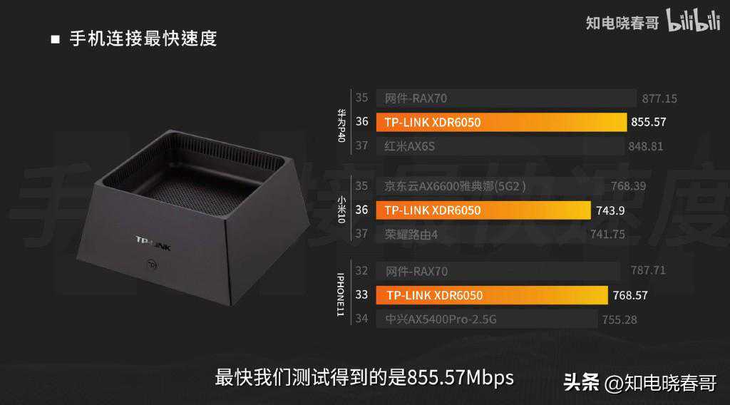 用手机跑,最快是855.57Mbps,配置不行,最理想情况下,无线也跑不太快。