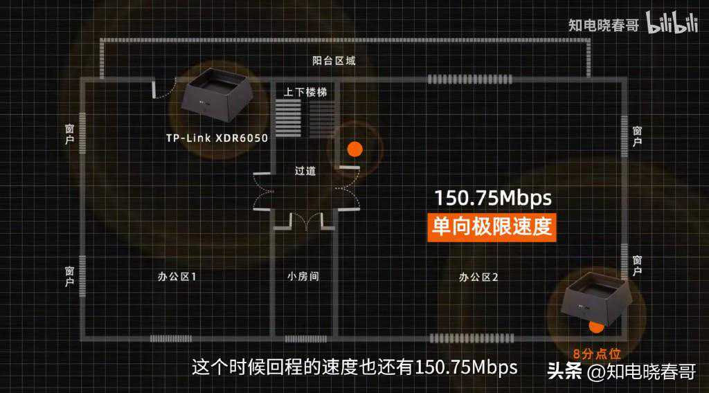 组网性能组网方面,虽然信号表现不好,但是TP有聚合回程的技术,可以综合利用2.4Ghz和5Ghz来组网,所以组网距离还是不错的,最远稳定组网距离位于10分点位,此时回程速度也还有150.75Mbps。