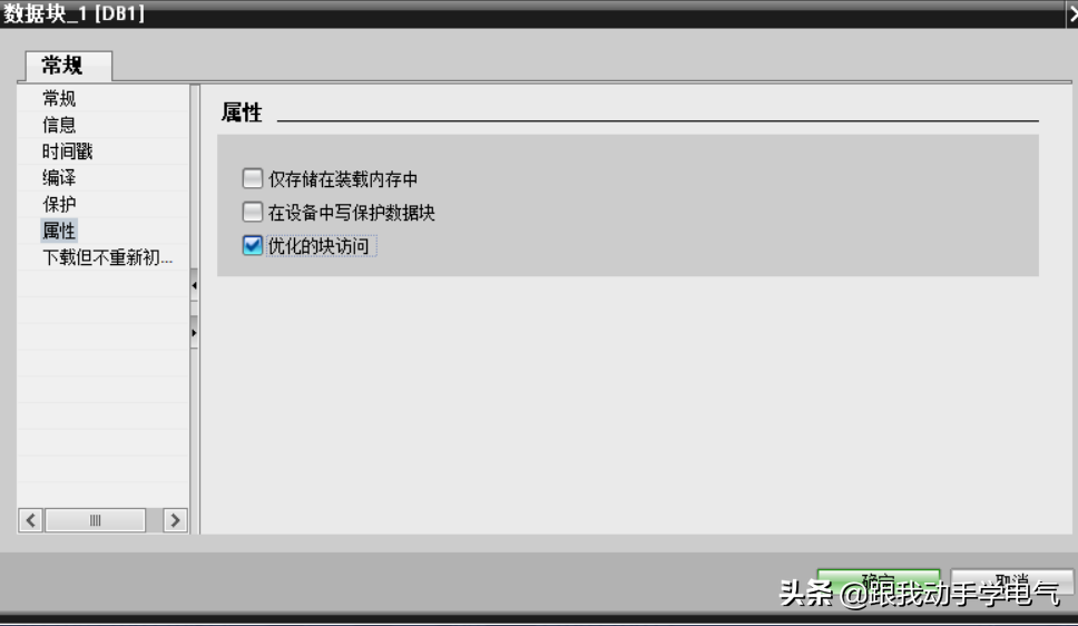 注意:数据块的块访问属性只能在创建数据块时定义。创建完成后无法修改数据块的访问属性。如果在编程中需要对数据块进行绝对地址访问,必须在创建该数据块时将块访问设置成“标准-与S7-300/400兼容”。