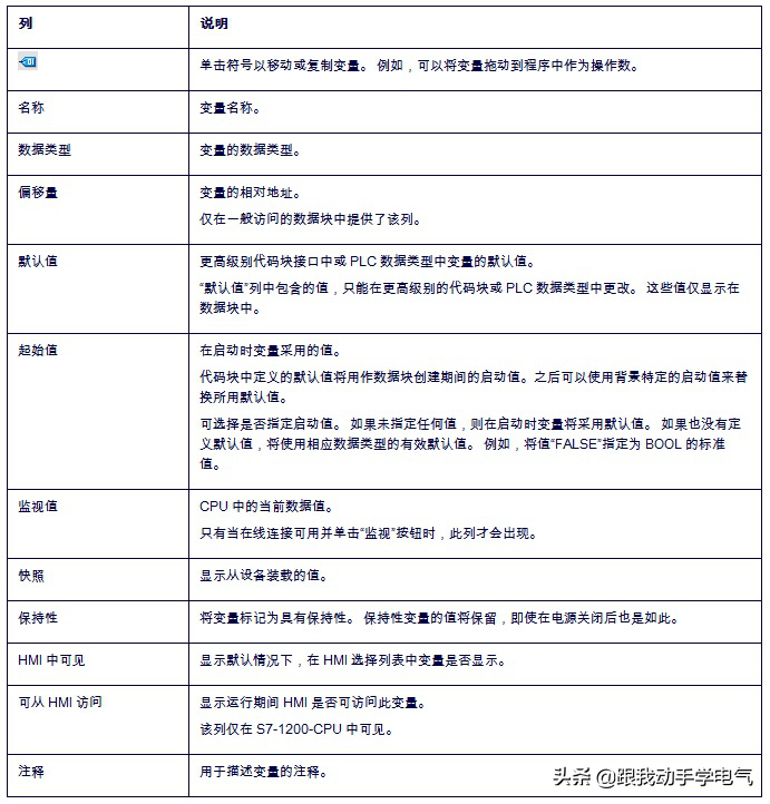 表1是对数据块变量定义的所有列的说明