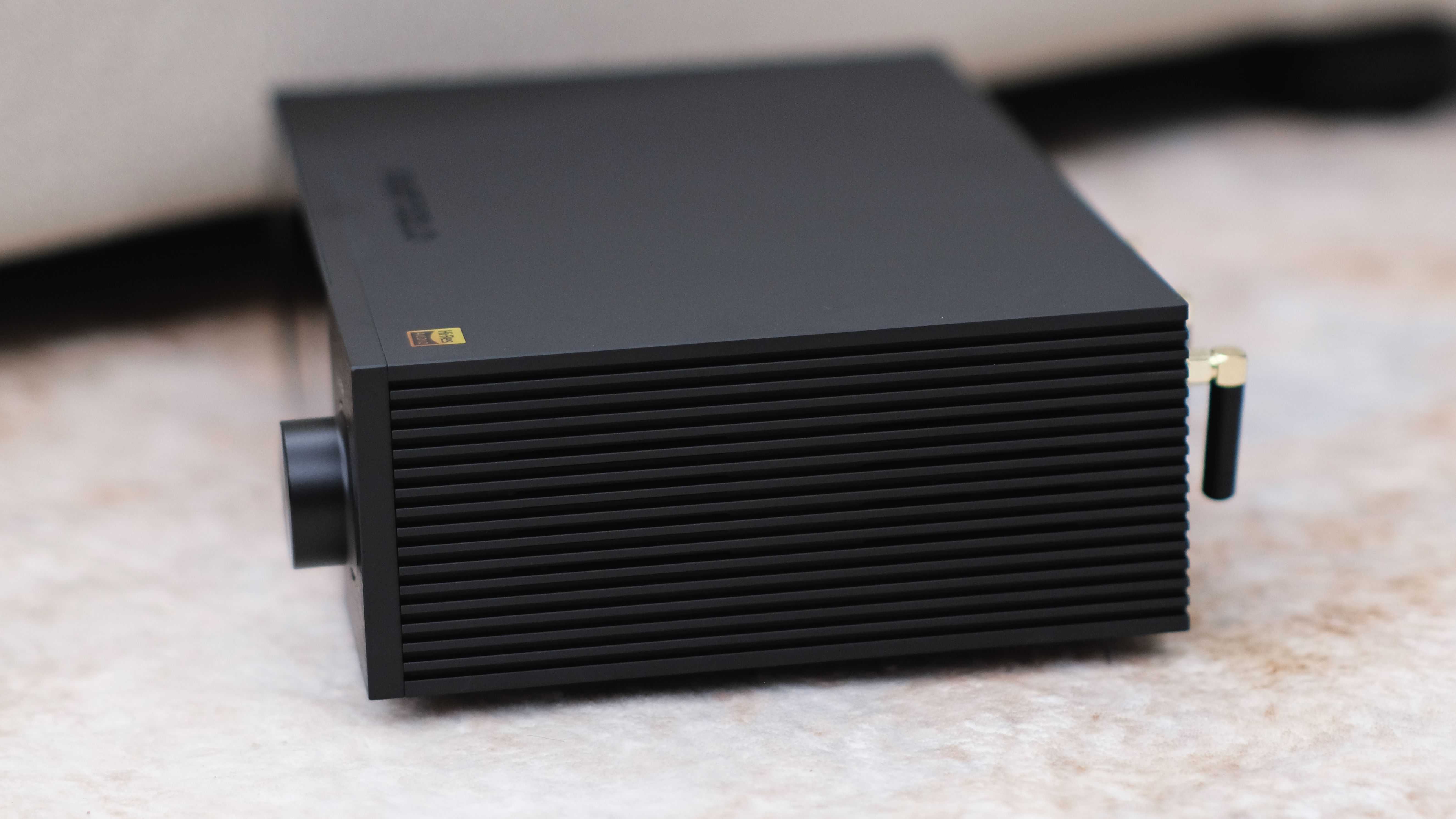 艾索洛DMP-A6在外观方面,完完全全长在了我的审美上,它自带第一眼就让我怦然心动的资本。187*270*90mm,身段非常的迷你精致,不论是书桌还是电视机柜上都能轻松摆放,完全不会占据太多空间。