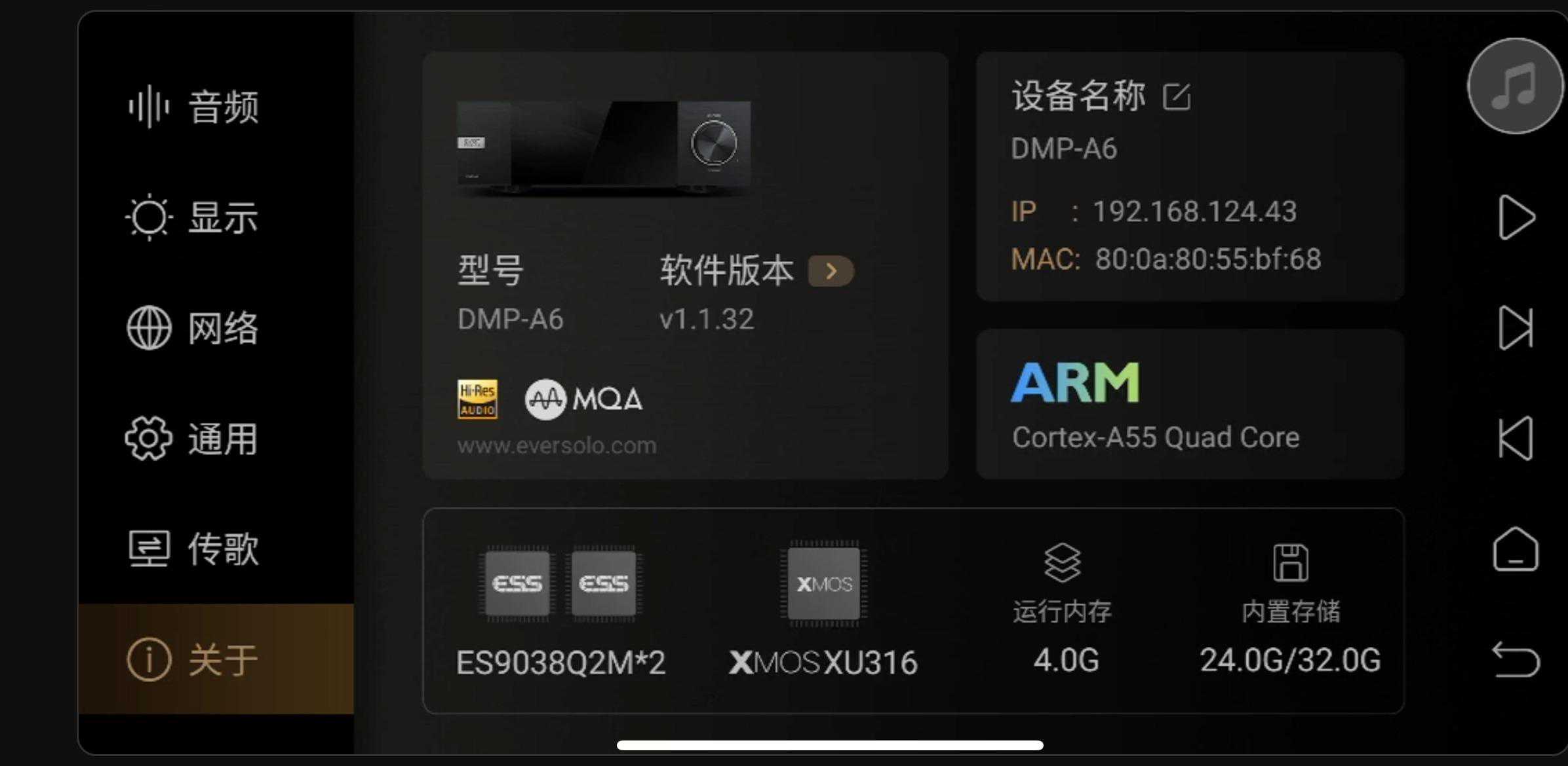 前段时间朋友推荐了一款数播解码一体机——艾索洛DMP-A6,这款数播解码一体机能够提供优秀的无损音频播放,并且支持高采样格式,如FLAC、WAV、APE、DSD512和MQA。还配有四核处理器、6寸高清触摸屏以及丰富的输入和输出端口,包括HDMIDSD输出和平衡XLR、双ESS9038Q2M专业DAC,以及绕过AndroidSRC限制的Eversolo原始采样率音频引擎(EOS)(AppleMusichi-resdirect输出),可以获得更加出色的音频保真度。