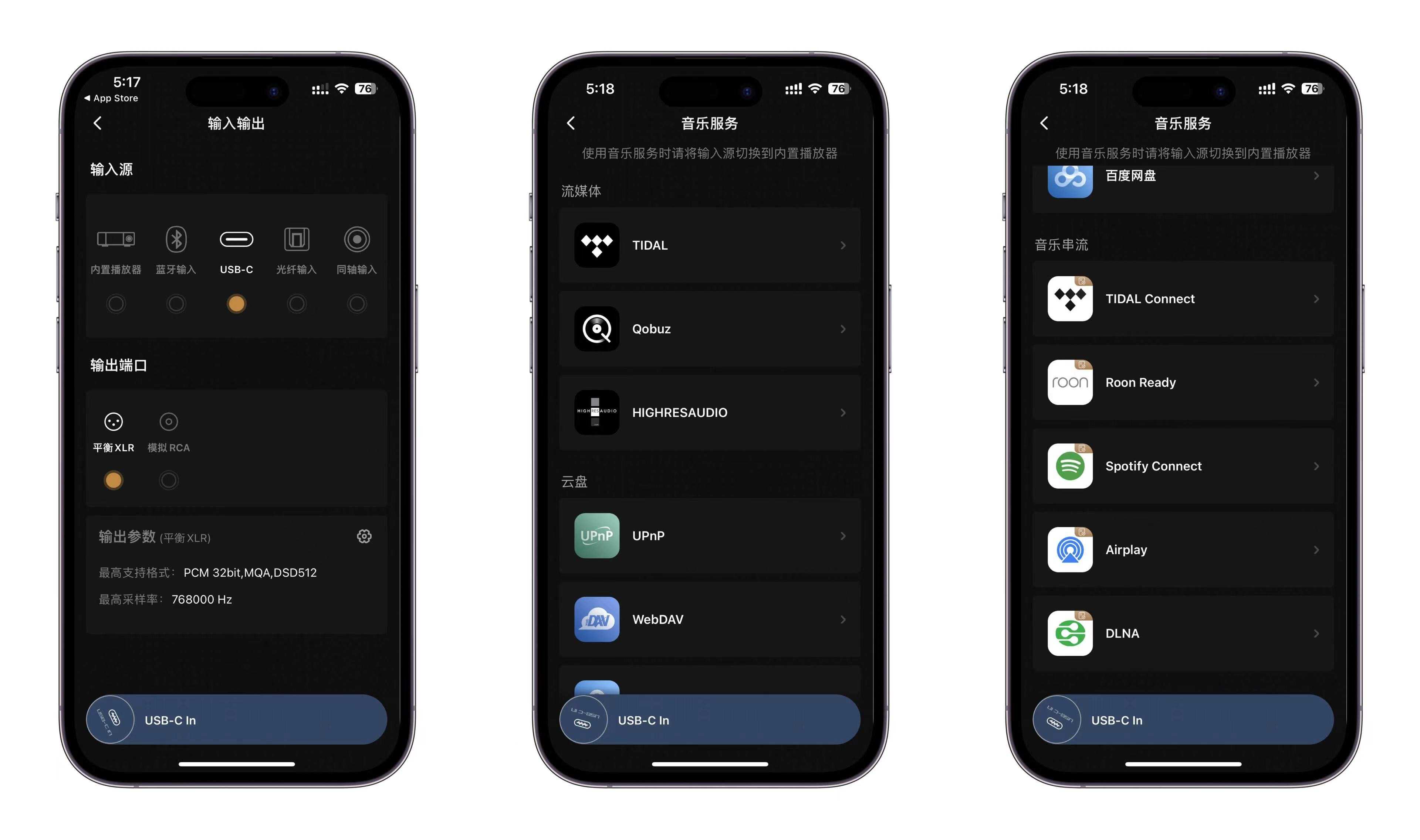 DMP-A6流媒体以及串流服务极其丰富,支持Tidal、Qobuz、Highresaudio、AmazonMusic等丰富的海量网络音乐服务,支持RoonReady、SpotifyConnect、TidalConnect等串流播放、支持移动设备AirPlay2、DLNA网络推送播放音乐,支持直接登录百度网盘、阿里云盘在线播放网盘音乐,支持NFS、SMB、WebDAV、UPnP协议访问局域网共享的存储设备。