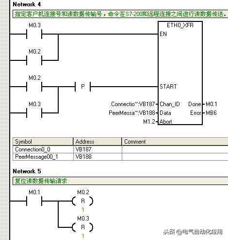 对于S7-200的同一个连接的多个数据传输,不能同时激活,必须分时调用。下面的程序就是用前一个数据传输的完成位去激活下一个数据传输,如图11.图12.图13.所示