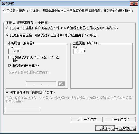 注意:分别组态S7-200和S7-300时,本地和远程的TSAP号是必须完全对应的。通常本地TSAP是默认的,所以在组态此步骤时,需要两边确认一下。