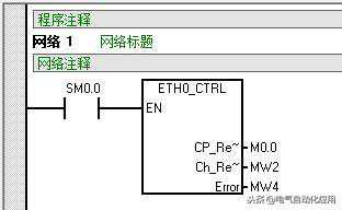 完成以太网向导配置后需要在程序中调用以太网向导所生成的ETHx_CTRL和ETH0_XFR,然后,将整个项目下载到作客户端的S7-200CPU上。