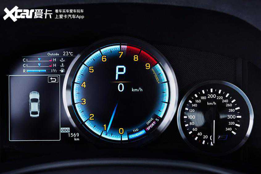 全液晶仪表有着炫目的动感效果,效仿ISFSPORT上的活动表盘,圆形的转速表成为视觉的焦点。