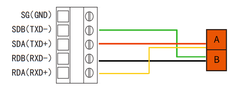 第二步:DTD435MC的Rs485-B端口接入三菱FX5UPLC自带的RDB与SDB端口。