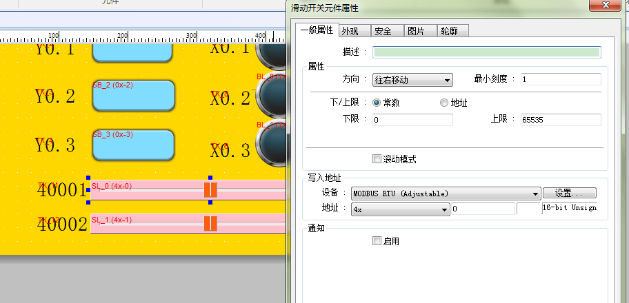3.设置Y点元件以及X点元件属性设置,并保存寄存器的设置