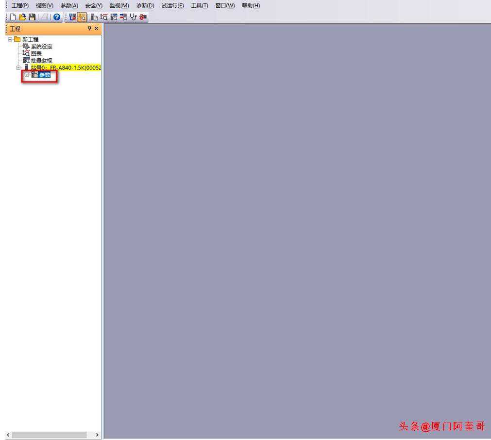 4.双击树状栏里参数,进入变频器参数设置界面: