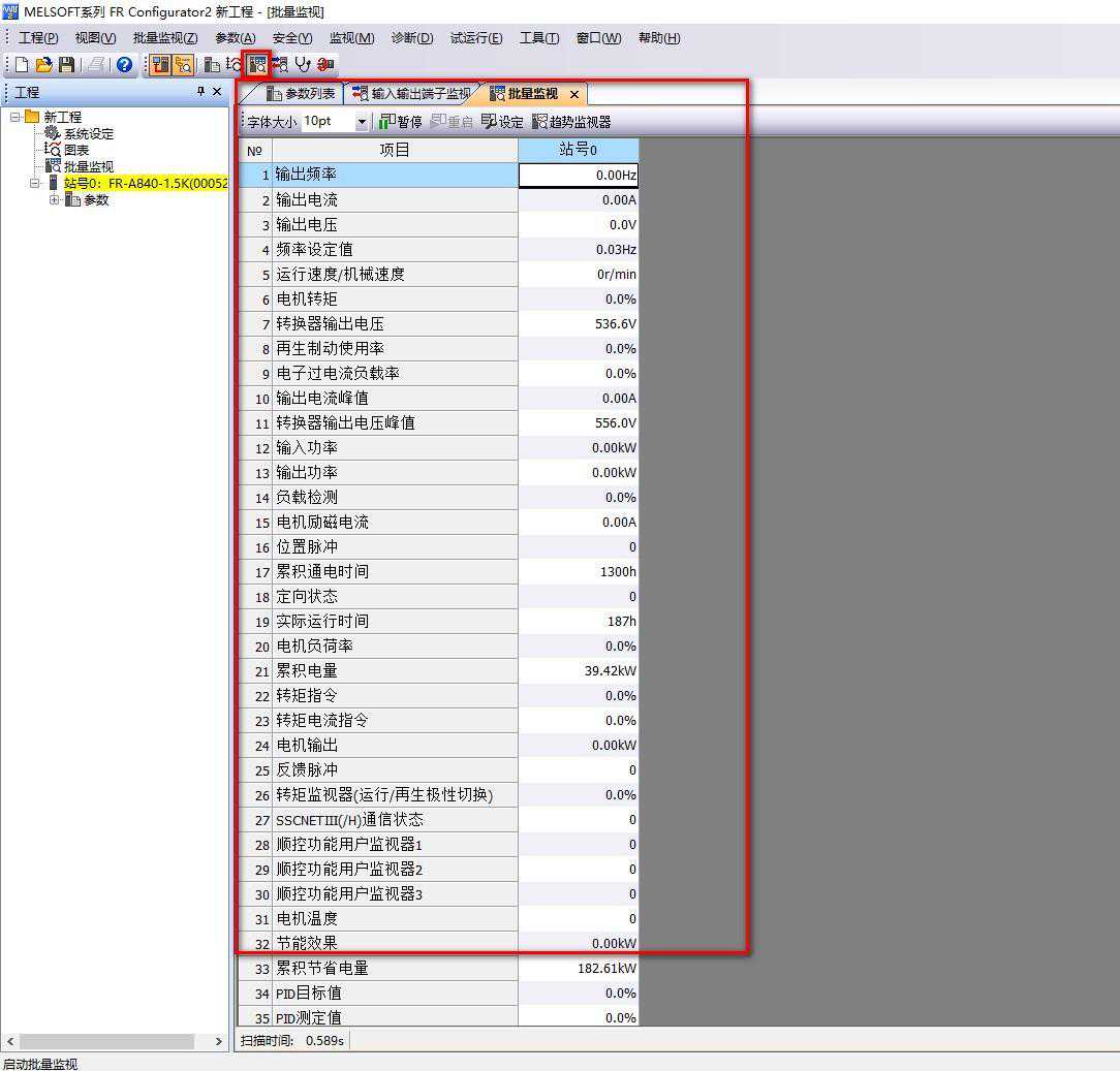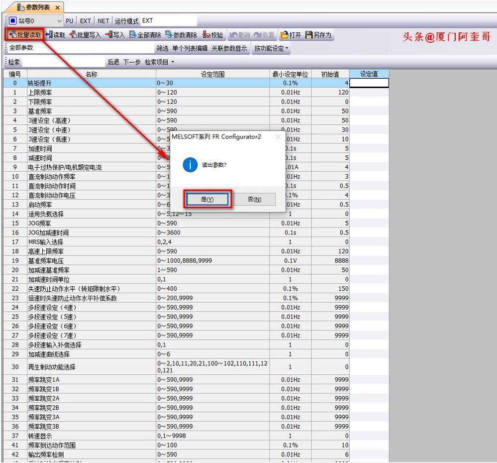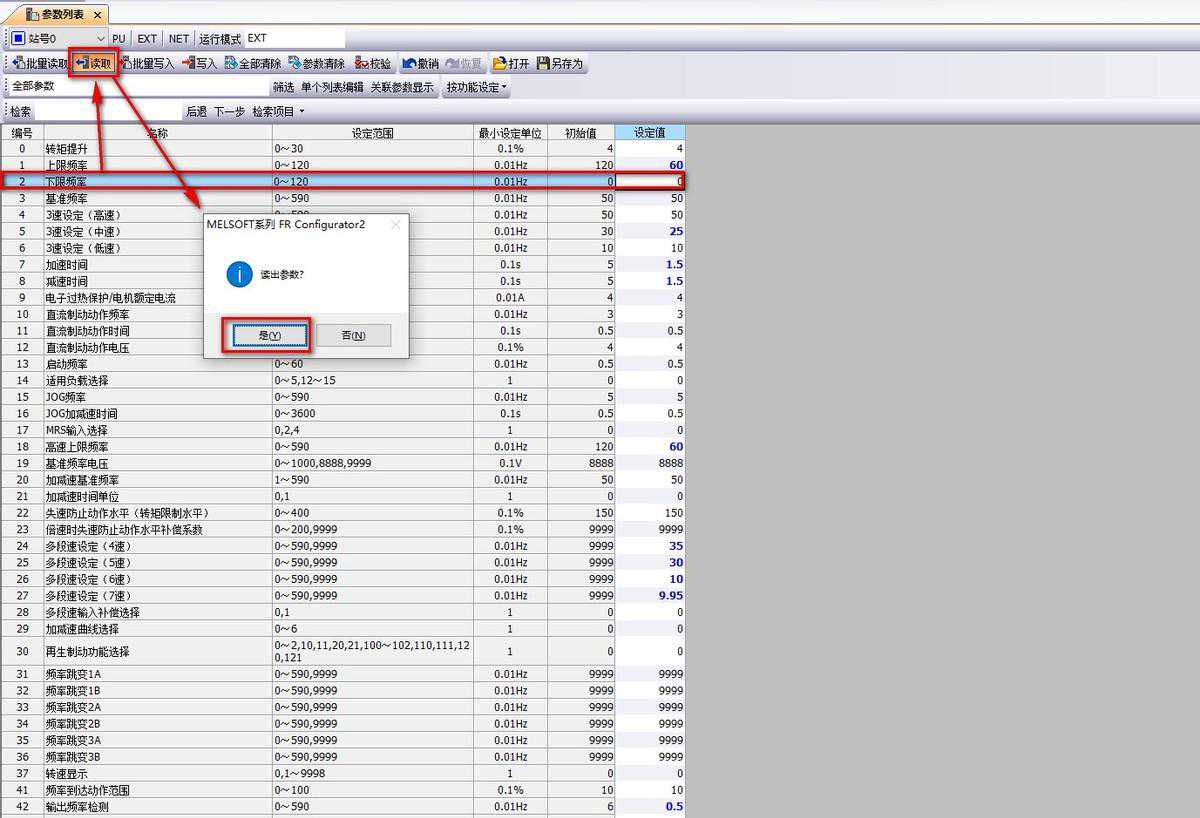 批量读取:读取所有变频器参数。