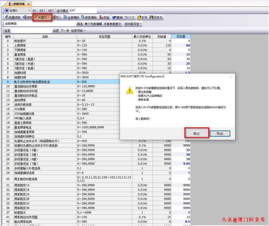 批量写入:写入所有变频器参数。