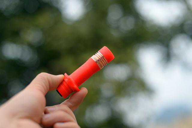 尾部一个按键负责开关机与调光,所有功能均使用尾按按钮执行。基本用法很简单:单击开/关,按住改变亮度,一共四个档位。开机状态下持续按六次进入爆闪。