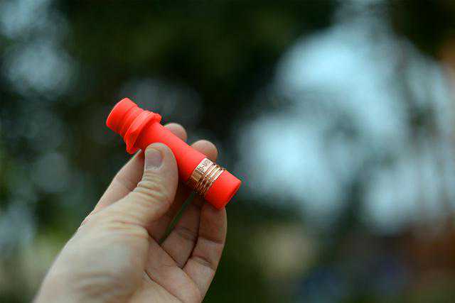 尾部硅胶按键,按键力度适中,按下去有清脆的卡塔声。尾部有兔子LOGO。整体平面,虽然按键突出手电尾部表面,但是倒立还是可以的。