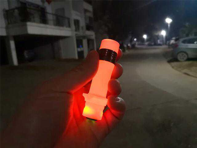 这款AA/14500版和第一款18650版本不同,它的尾按可玩性比较高,类似跑马灯的渐变指示灯不停地变换。