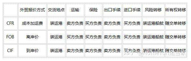 ▼CFR、FOB、CIF这三种外贸报价方式间的不同点01、FOB:买方负责租船订舱、预付运费;办理保险、支付保险;
