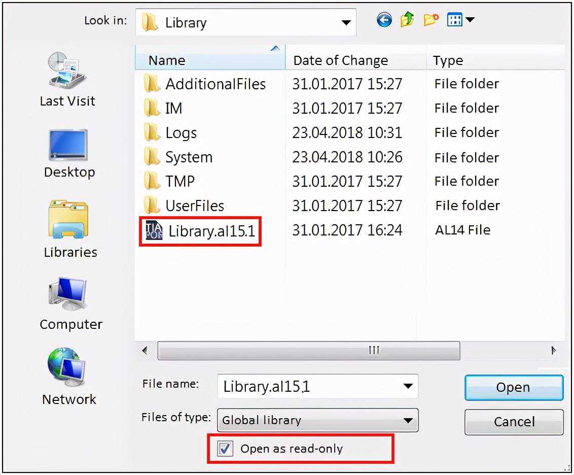 ·如果以只读方式打开全局库,则该库及其所有子文件夹都是灰色的。只要所有用户都以只读的方式打开全局库,多用户就可以同时从中央存储位置打开全局库。升级库时,必须激活只读选项。