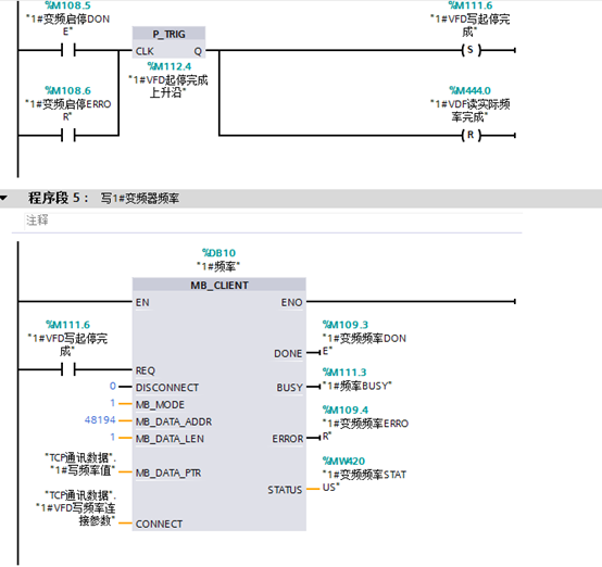2.对同一个变频器操作的时候,每调用一次MB_CLIENT指令的时候可以在DB块里重新建立一个连接,连接参数里IP地址相同,ID号不同