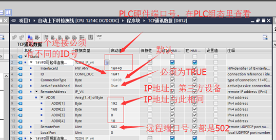 4.DB块里的连接参数的变量类型(TCON_IP_V4)必须手动输入,自带的可选变量类型中没有该类型