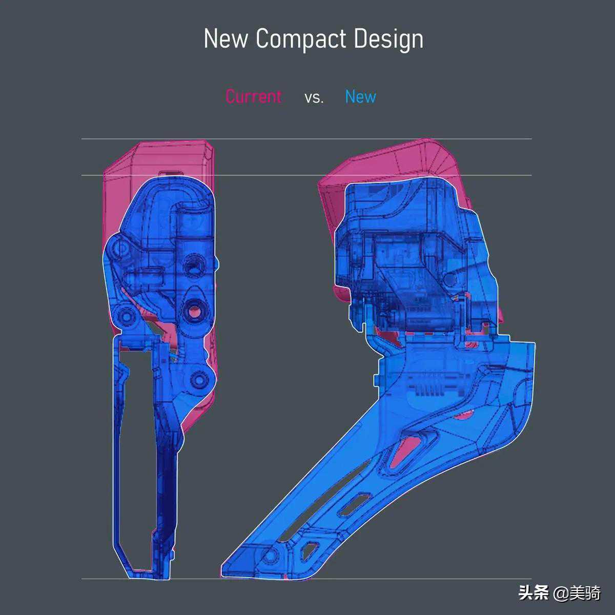 新的Di2平台在变速器中引入改进设计的电机,降低了处理时间,提高电机和齿轮机构之间的移动时间以及传动性能,从而实现更快的换挡速度。官方宣传前拨的响应速度提高了45%。