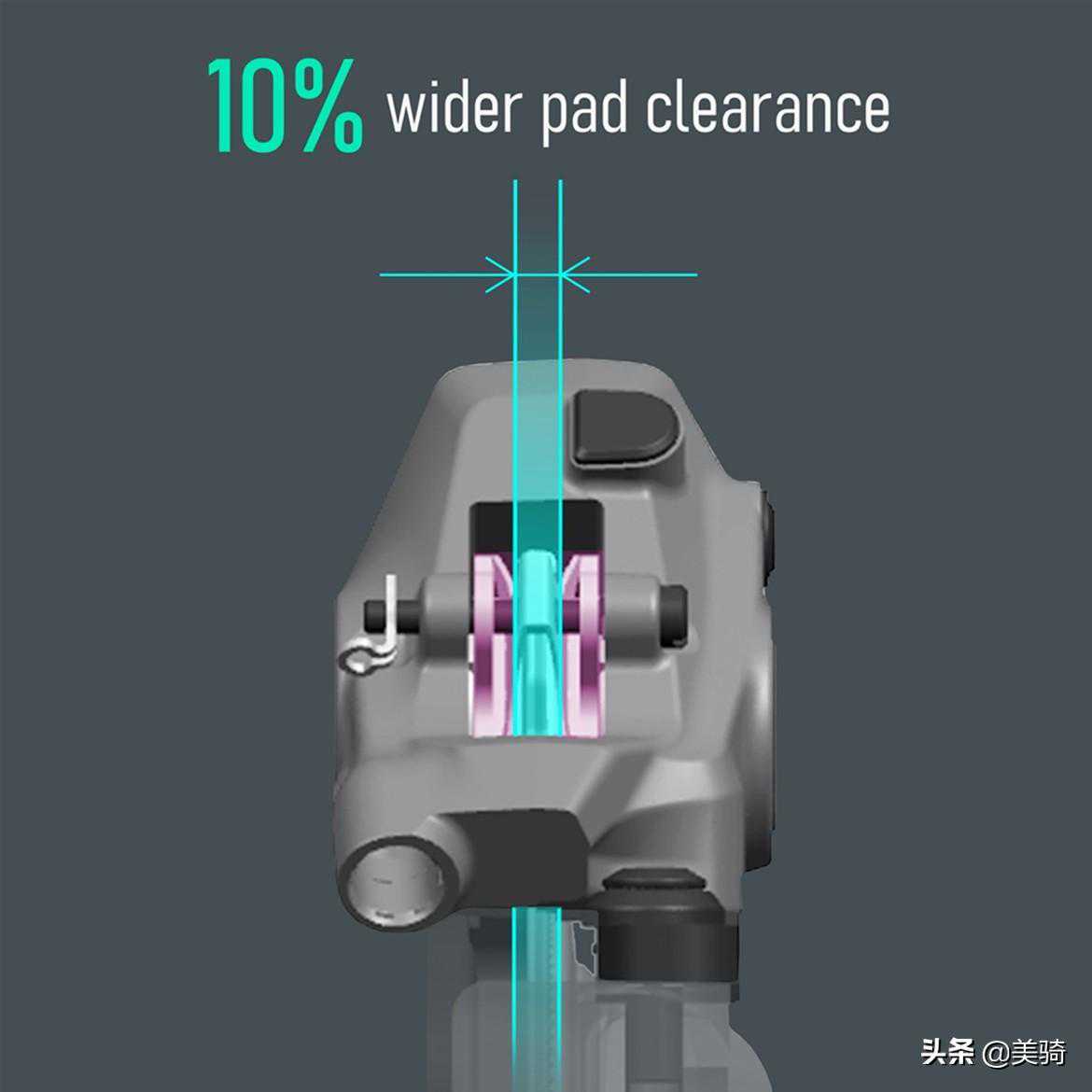在DA夹器上,回归了当年的一体夹器工艺;而UT仍是两片式结构。新款夹器的来令片间隙加大了10%,一定程度上可以缓解碟刹公路上常见的蹭碟现象。为了弥补这10%的间隙,手变上搭载了山地和Gravel刹车系统中的SERVOWAVE技术,让来令片可以更快地接触碟片。
