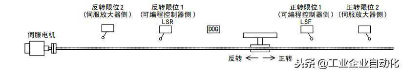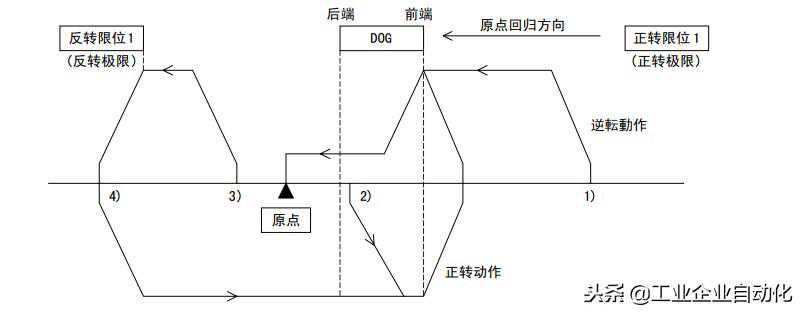 设计有正转限位、反转限位时,执行使用了DOG搜索功能的原点回归。此时,因原点回归的开始位置不同,原定回归动作也各不同。