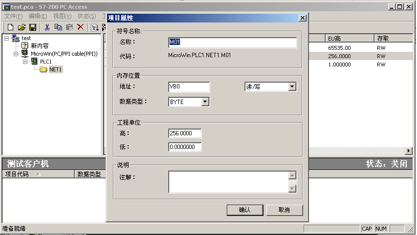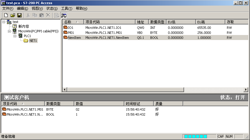 第二,PCACCESS是专为S7200PLC所作的OPC服务器,内置OPC测试CLIENT端;打开此软件后,添加新的PLC,项目,Tag点等