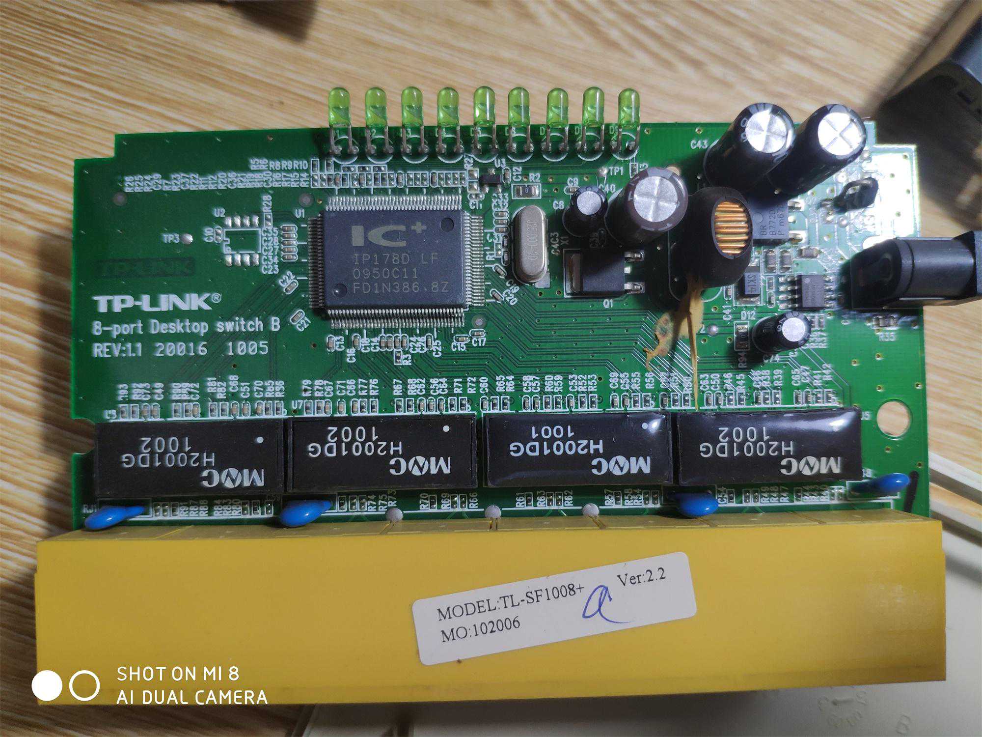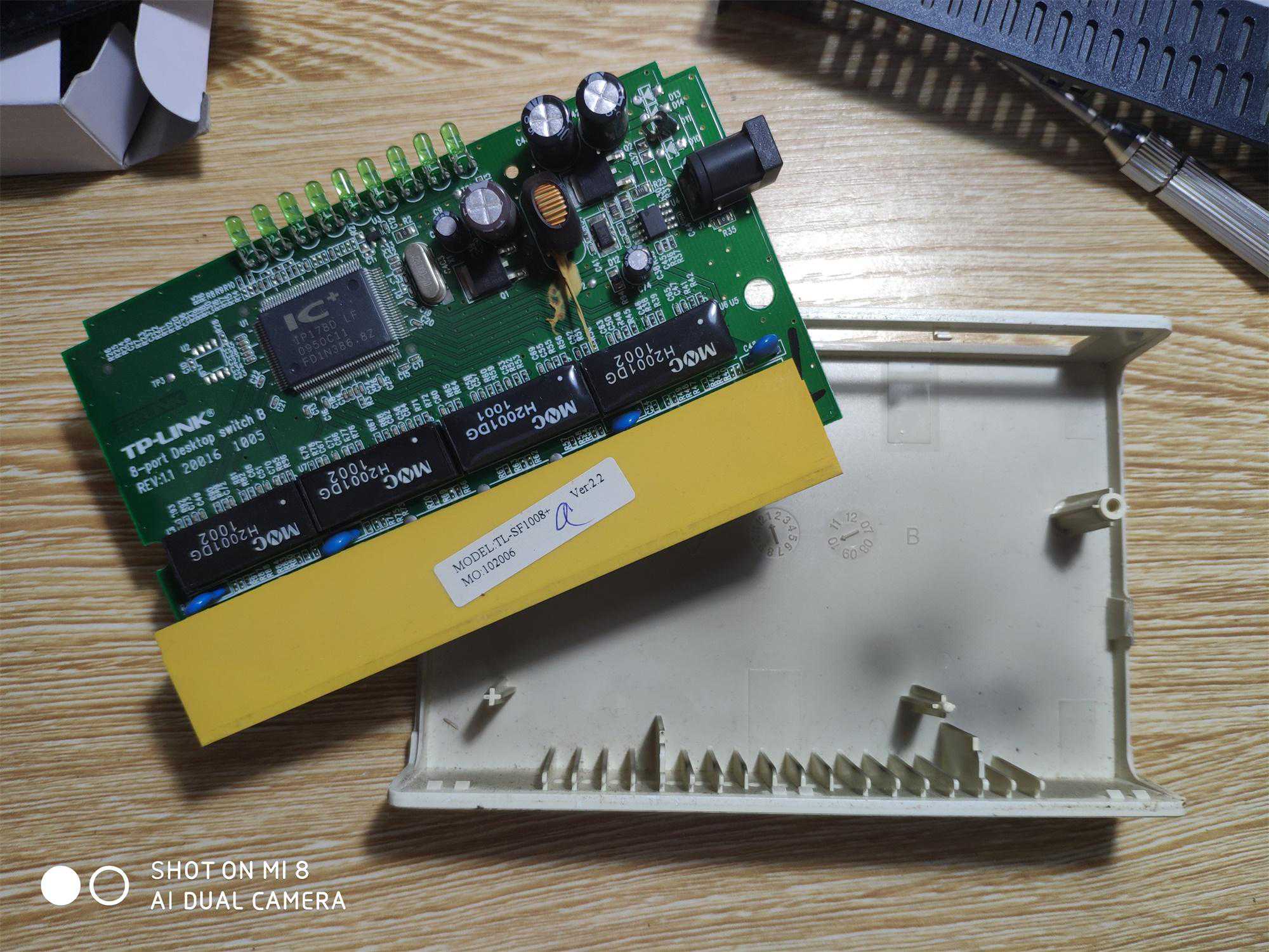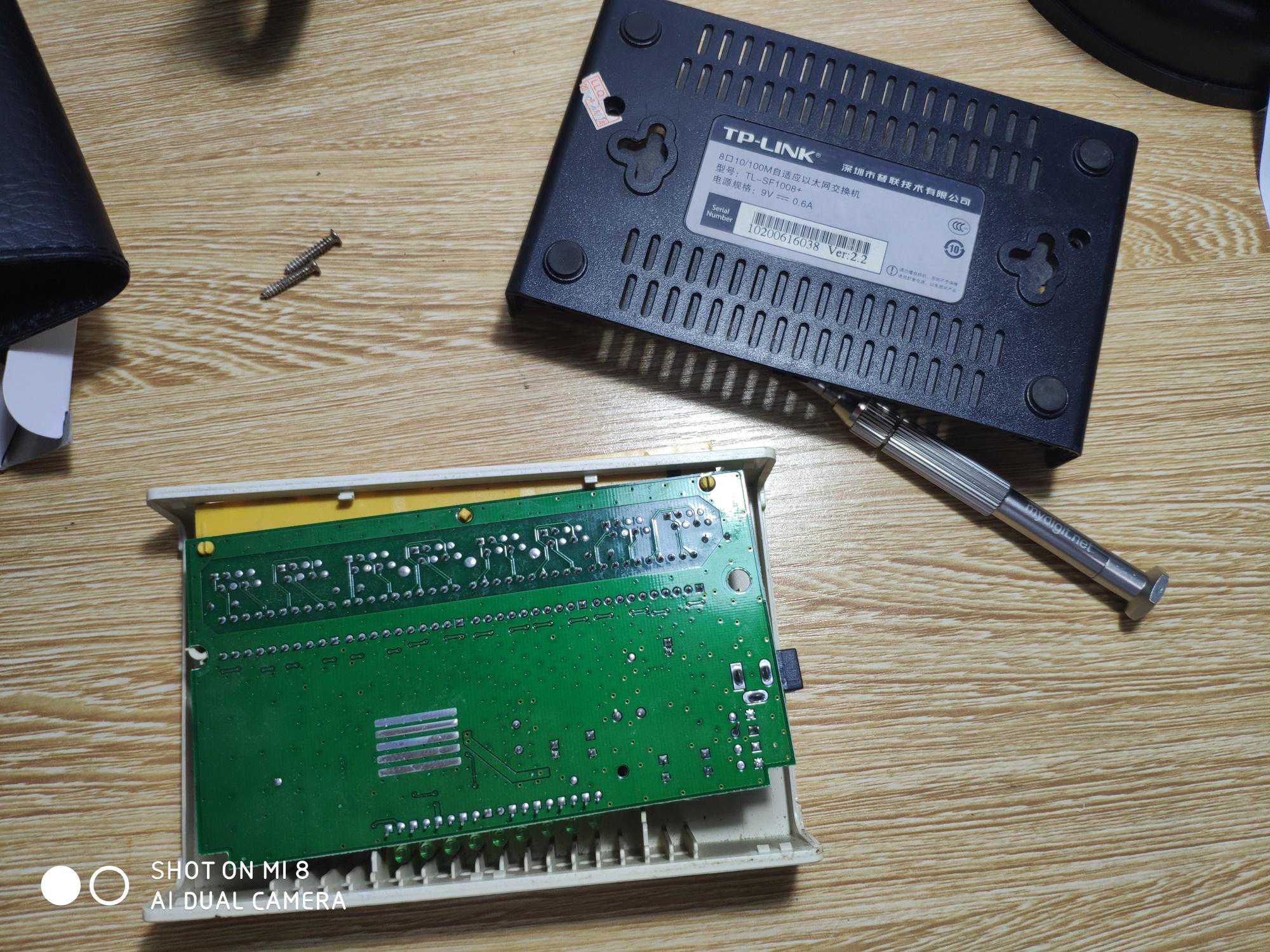 偶得一个TPLINK的8口百兆交换机,这快过年了,单位值班,闲来无事,就拆起看看内部做工。