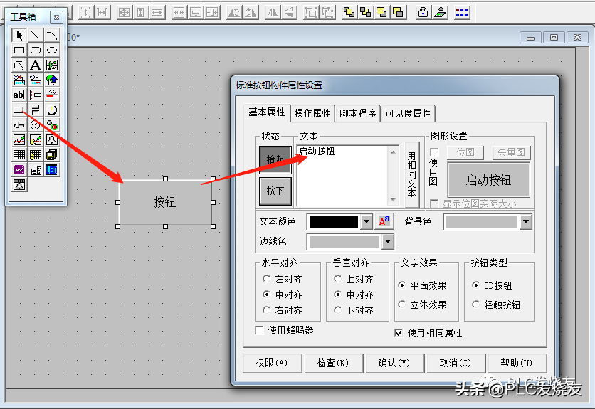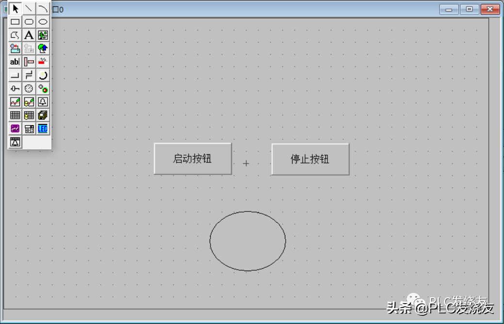 第二步:(双击打开窗口0,设计如下图启保停画面)