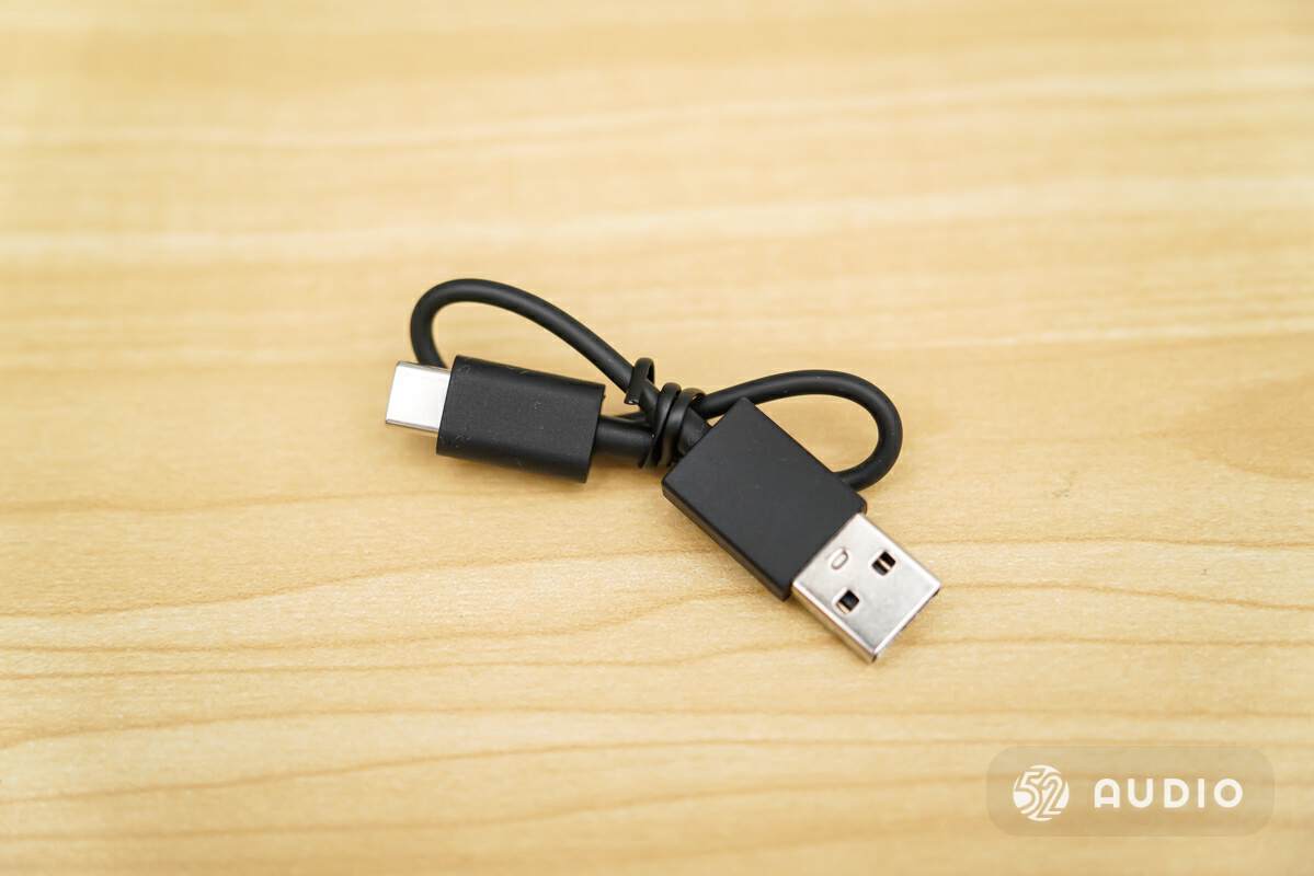 充电线缆一览,为一根USB-A转USB-C线缆,长度偏短。