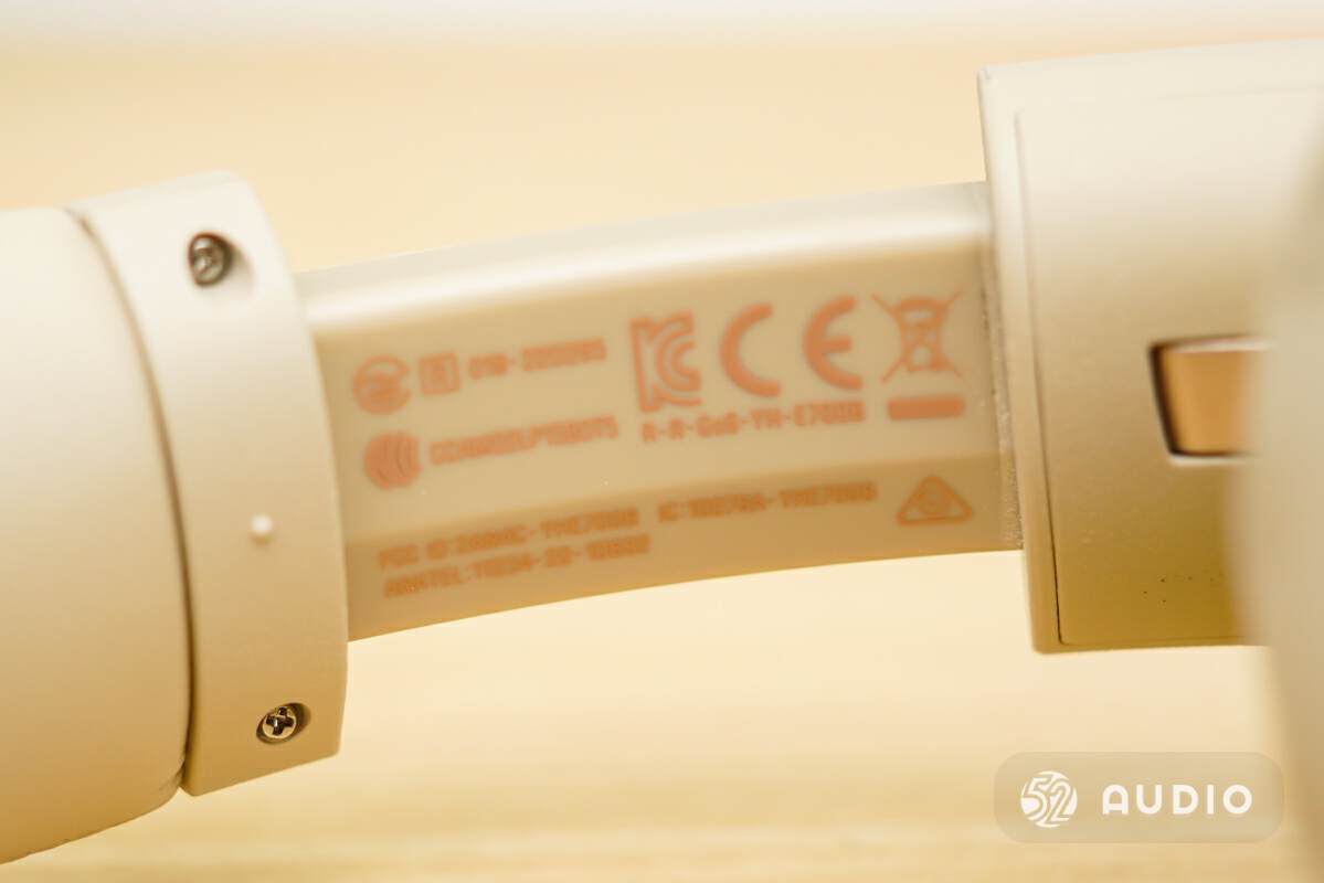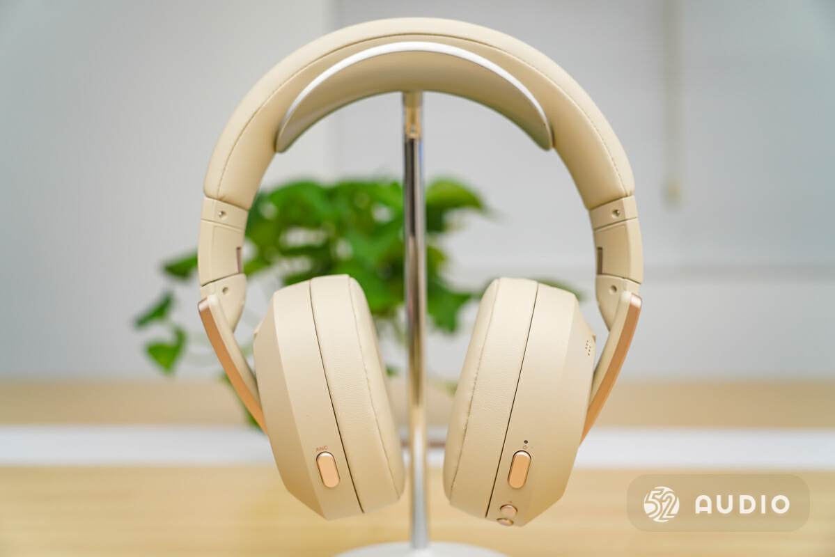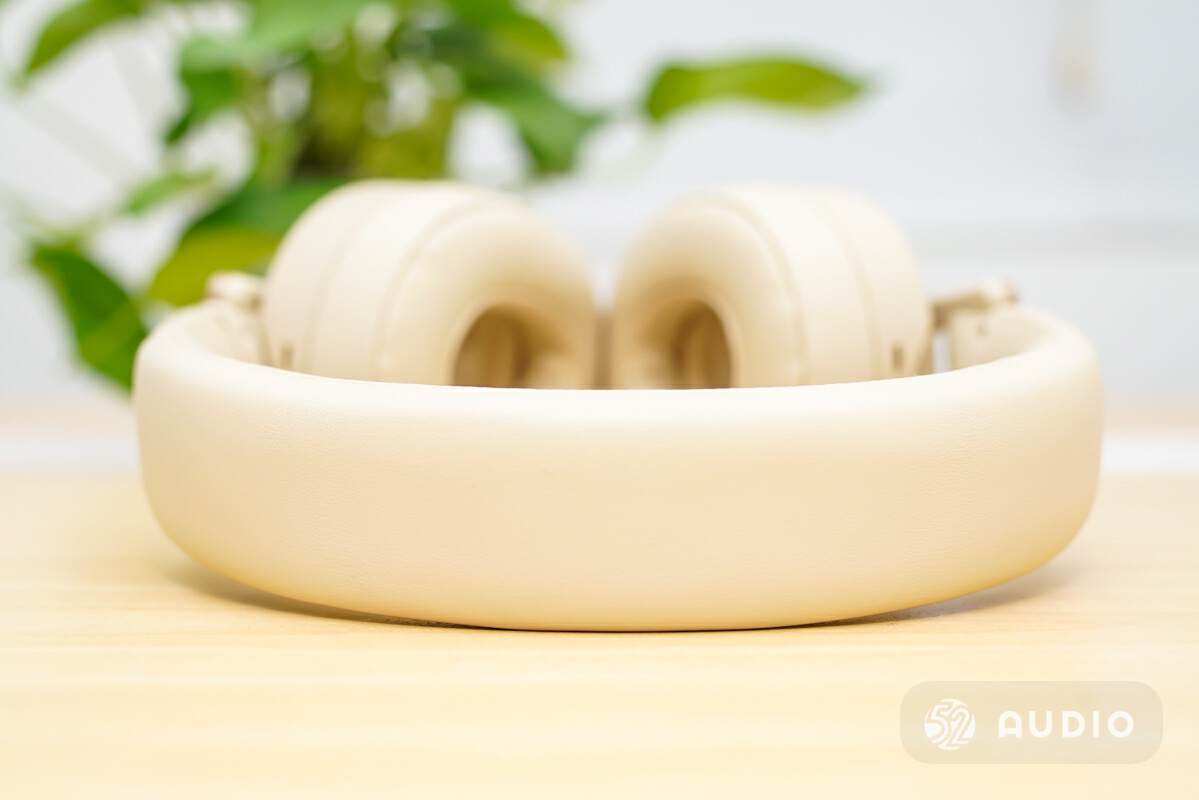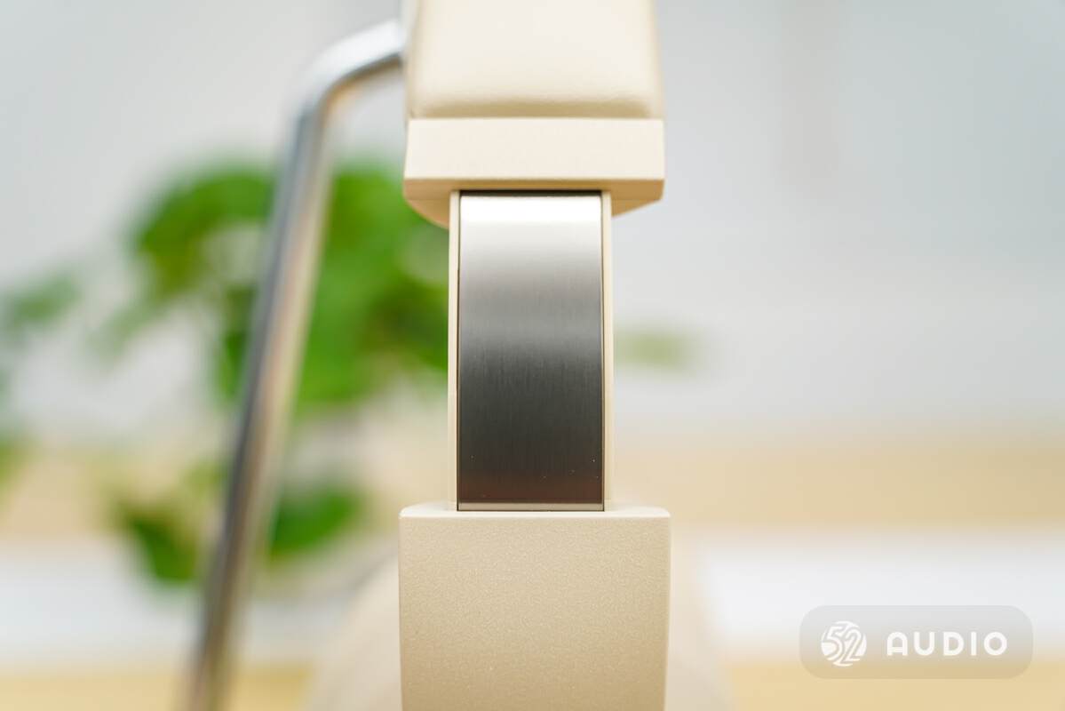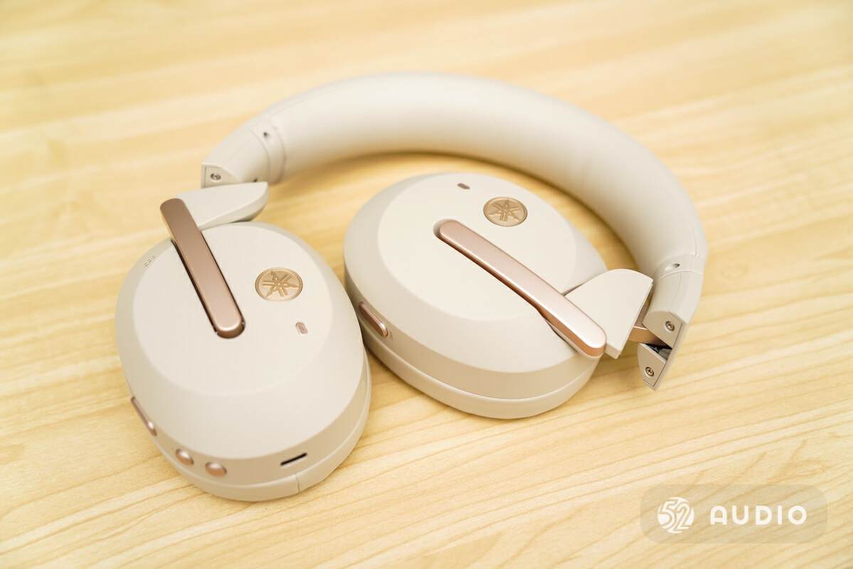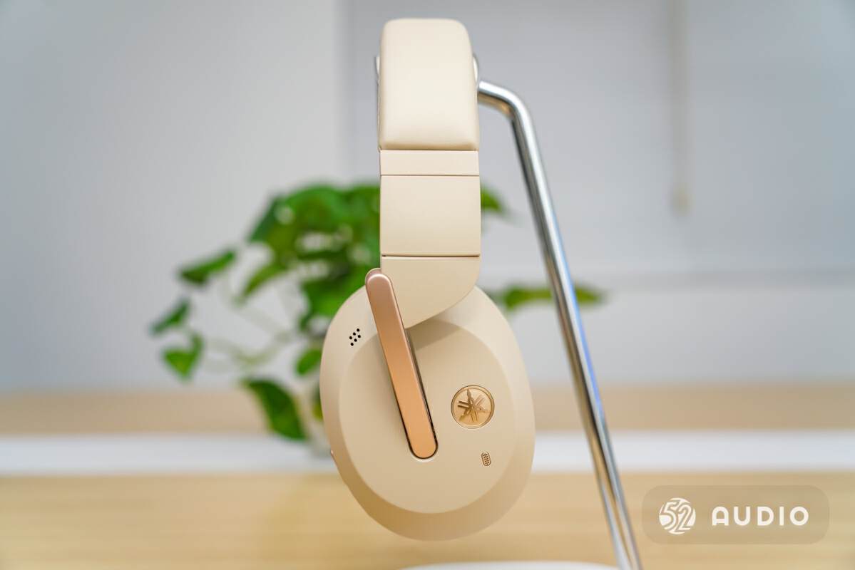 「月牙米」色的雅马哈YH-E700B的外观如上,整体呈米黄色,主体骨架部份为塑料磨砂面,头梁、耳罩圈则为皮面,并在按钮、耳罩骨架等位置设置有金属光泽材质,提升质感。