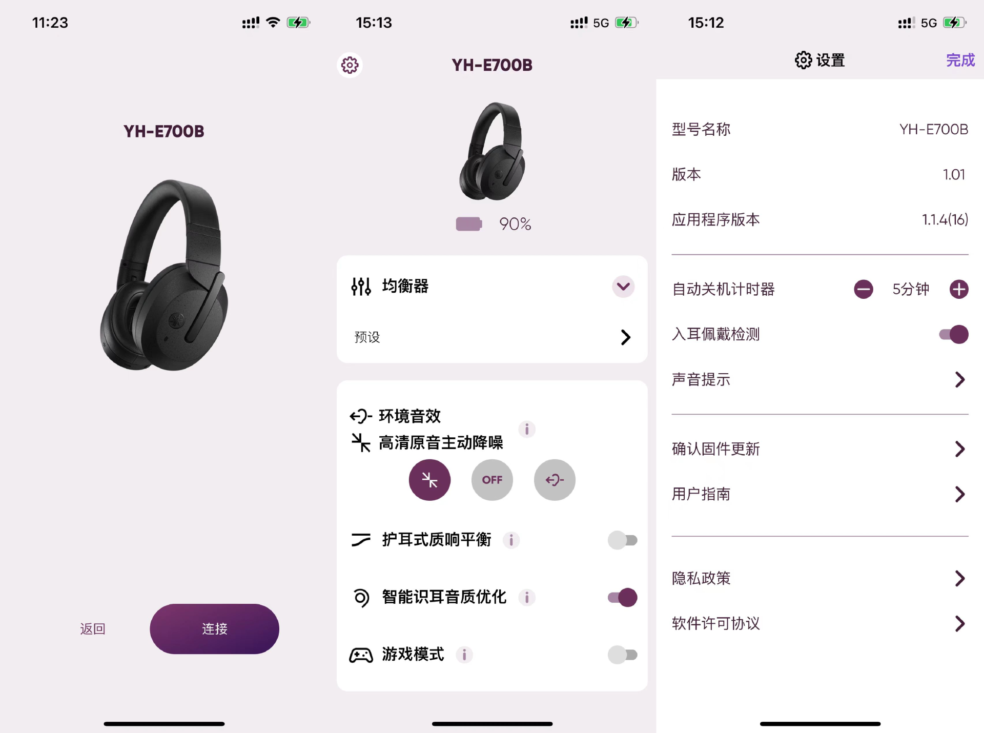 App方面,Yamaha雅马哈YH-E700B的配套App为「YamahaHeadphoneControl」,在安装打开后,App会自动识别出耳机型号,并进行连接。