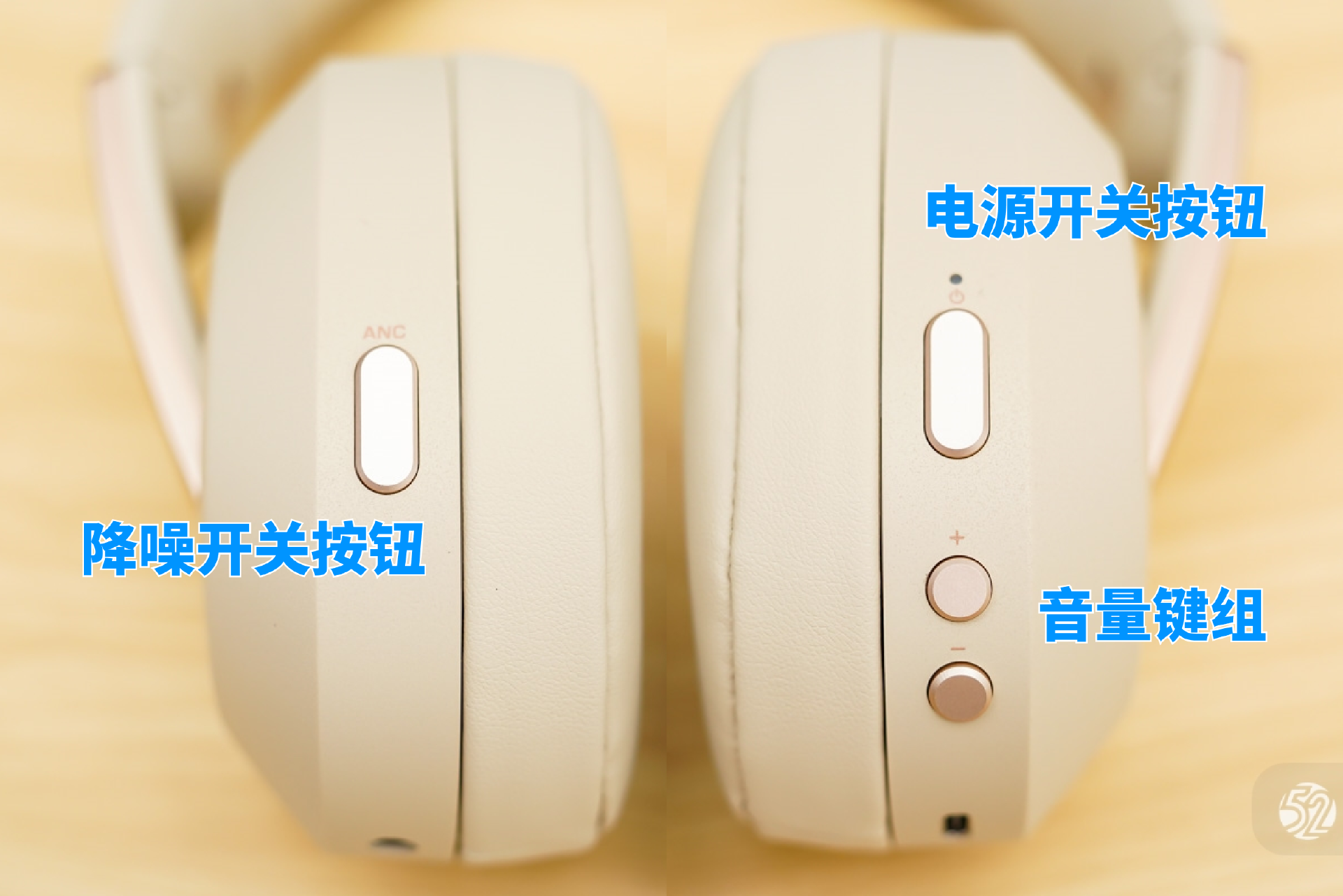左侧耳罩侧后方设置ANC主动降噪控制按钮。